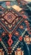 • Dramatic embroidery: The centerpiece is an elaborate, symmetrical embroidered design in vivid reds, creams, golds, and indigo, radiating from the neckline in a V-shaped medallion. It features stars, flowers, diamonds, and chevrons in bold geometric formations.