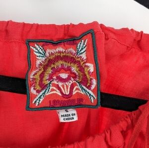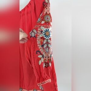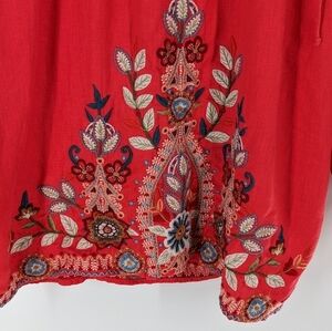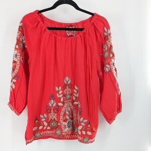 Johnny Was Maisie Peasant Tie Linen Blouse Embroidered Small