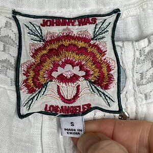 Johnny Was Short Sleeve Embroidered Square Neck Sovanna Wander Top White Gray S