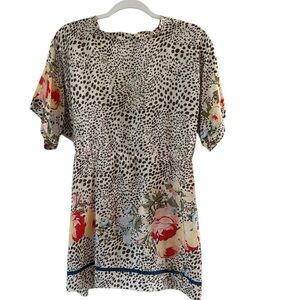 Johnny Was Silk Floral Print V-Neck Animal Print Tunic Blouse Swim size Medium