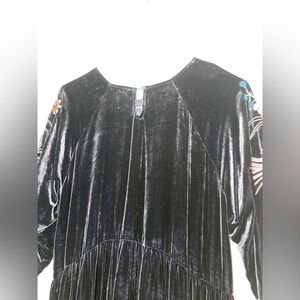 Johnny Was Tiarei Raglan Tiered Floral Embroidered crushed Velvet Midi Dress xl