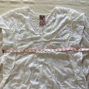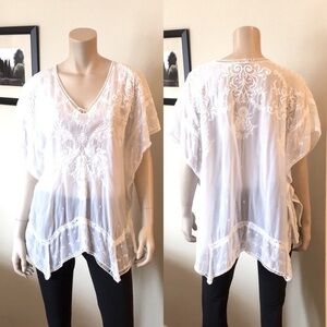 Johnny Was White Embroidered Flowy Damask Tunic. Size S. P/A876/M