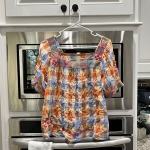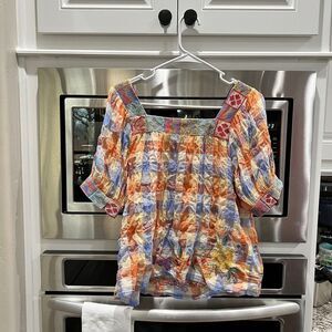 Johnny Was Workshop Petunia Square Neck Park Blouse Boho Chic W18823