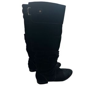 Johnston & Murphy black suede slouchy knee-high boots 7M pull-on casual