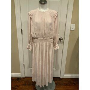 Joie Rheia Shimmer Nude Pleated Romantic Midi Dress, NWT! Size Large