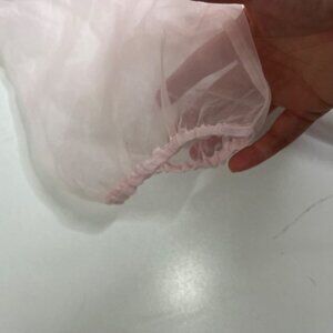 Joie light pink short sleeve button down blouse with tie at neck, sheer, loose fit