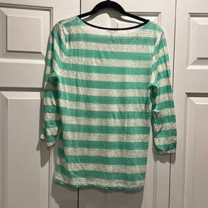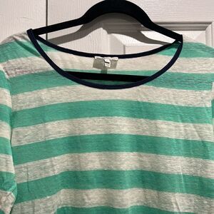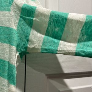 Joie Teal/White lightweight linen striped sweater, Size Large. Armpits have a little piling but otherwise great.