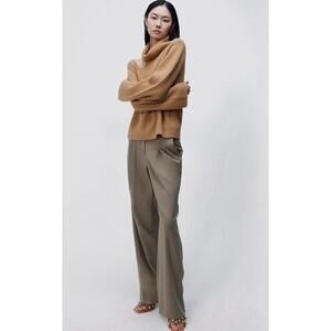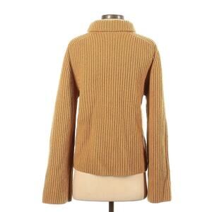 The Dustin Recycled Cashmere Turtleneck Ribbed Pullover in Amaretto. A dialogue on luxurious comfort and sustainability. Relaxed fit turtleneck pullover spun from a recycled cashmere-wool blend for a superlatively soft handle and cozy warmth. Linear ribbing and an oblong cutout lend dimensional intrigue.
