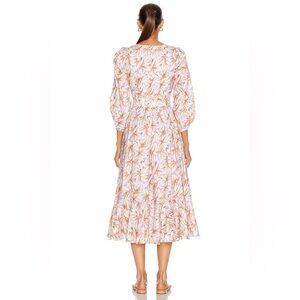 Beautiful "Ella" dress in an all-over floral print ("Lilac Print"). Please note that the dress is missing its original belt - but it would look good with a raffia or brown leather belt.
