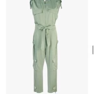 This effortlessly chic boilersuit features a relaxed, utilitarian silhouette with elevated details — shoulder ties, front utility pockets, and a flattering tie waist. Made from soft sage green twill, it’s both structured and lightweight, perfect for transitional weather or easy layering year-round.
