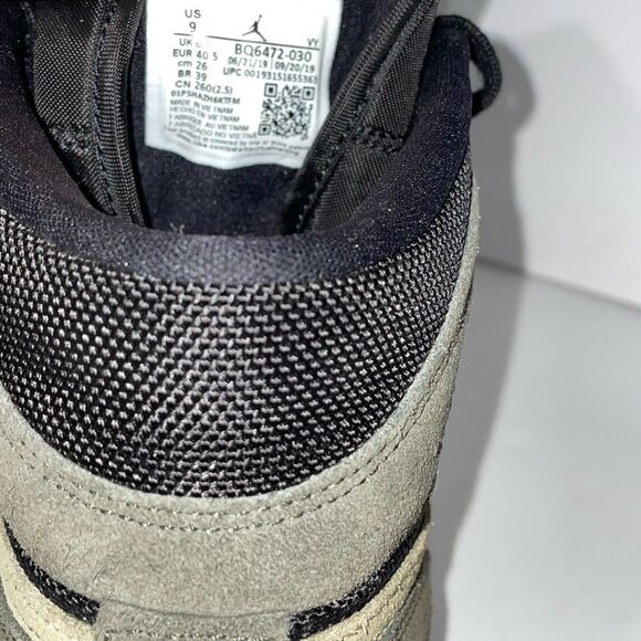 Step up your style with these Jordan 1 Mid Military Olive sneakers. Featuring a sleek black and green design, these shoes offer both comfort and fashion. Perfect for any casual outing.