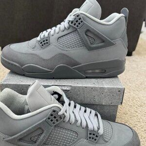 Size 10 wet cement 4s with boxwet cement, Nike Air Jordan 4, sneaker, athletic, streetwear, monochrome, premium, cushioning, collectible, minimalist