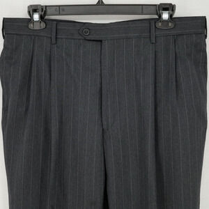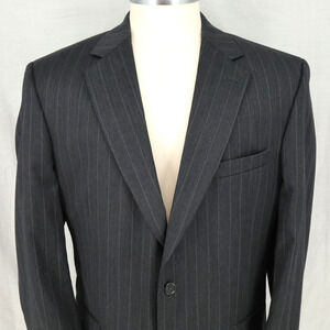 Jos A Bank Suit Men's 44R Dark Gray Pinstripe Wool Jacket Lined Pleated Cuffed Pants