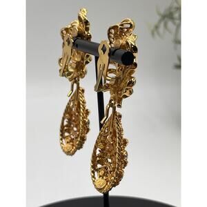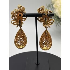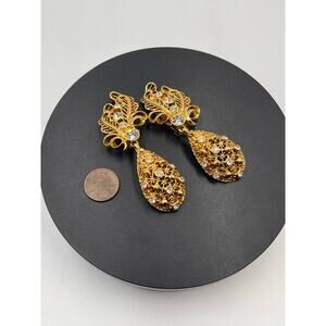 1993 Versatile Elegance Earrings Clip-On Rhinestone Filigree Fashion Costume Jewelry wCollectable