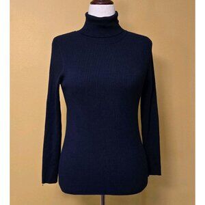 Joseph A Knit Turtleneck Sweater Navy Blue Womens Large Ribbed Rayon Stretch