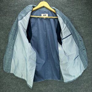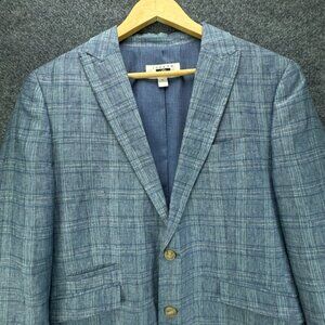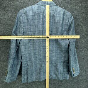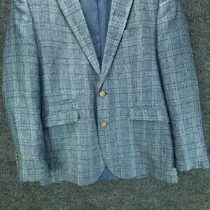 Joseph Abboud Sport Coat Mens Small Blue 100% Linen Plaid Jacket Blazer