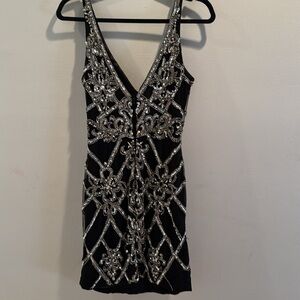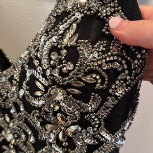 Jovani Black and Silver Embellished Sequin and Beaded Cocktail Dress 6