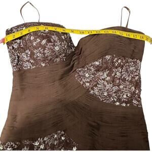 Jovani Strapless Pleated Sequence Full Length Evening Prom Gown Brown (16)
