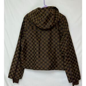 Judith March Womens Large Brown Checked Hooded Full 2 Way Zip Long Sleeve Jacket