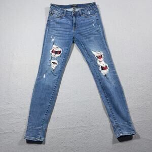 Judy Blue Skinny Fit Jeans Women 7/28 Distressed Patched Ripped USA Flag Denim