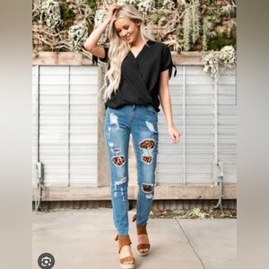 Judy Blue Sz 15/32 Jeans Skinny Fit Distressed Tattered Leopard Print Patch Pants