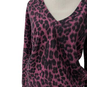 Juicy Couture Wool & Cashmere Long Sleeve Leopard Print V-Neck Sweater Size M