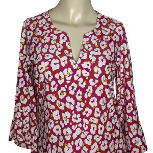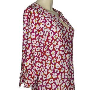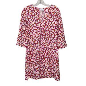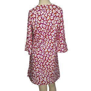 June Connally V neck pink white floral abstract above knee summer dress Size M