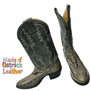 Justin Boots #8936 Men’s Cowboy Boots Antique Grey Ostrich Leather Size 8D