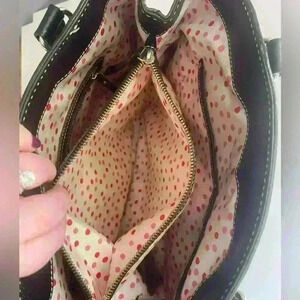 This is a project piece. The interior lining needs cleaned, and the leather has rubbed off on one handle. Otherwise a nice bag.