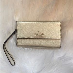 KATE SPADE gold leather wristlet