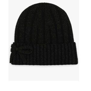 KATE SPADE NY metallic bow knit cuffed women's beanie winter warm hat + gloves