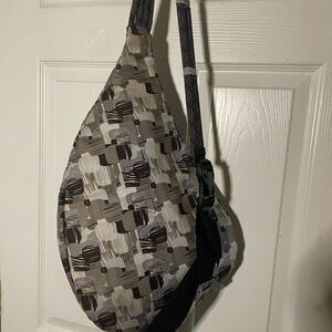 KAVU Rope Sling Bag Camouflage shades of gray.two front pockets two side zipper with padded back. G5