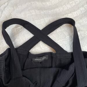 KENDALL AND KYLIE Black Ribbed Extra Small Mini Dress Cross Back