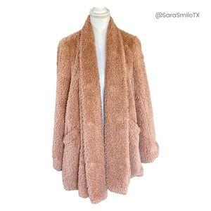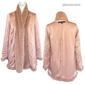 KENNETH COLE NY Blush Pink Teddy Bear Plush Faux Fur Mid-Length Coat