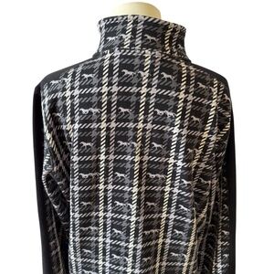 Girls size L, looks oversized for even adjust size S-M - see my measurements, black, blue and gray, Kerrits exclusice Plaid Pasture print, 1/4 zip front, stand up collar, fleece lined, mid-weight.