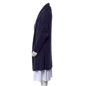 K/F KaufmanFranco Navy Blue Open Front Knit Chunky Shawl Cardigan Sweater Size S