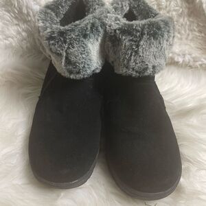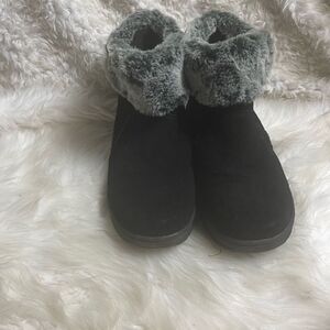 KHOMBU Jessica leather suede black ankle boots with gray & black faux fur SZ10M size zippers rubber soles . Pre owned in good used condition normal wear see all pictures any questions please message.A2