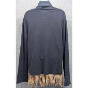 KIAL Womens Sweater - Black, Pullover, Turtle Neck, Leather Fringe, Western, M