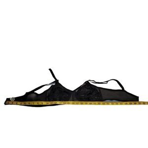 Black lace cups, no wires or padding. Small flaw on front otherwise great.