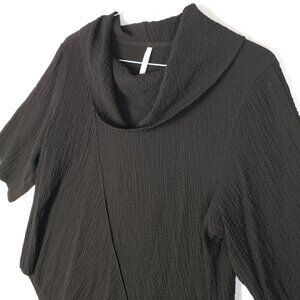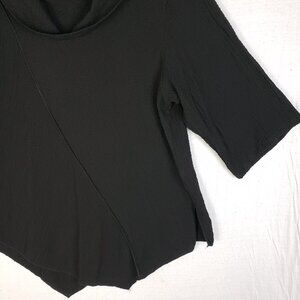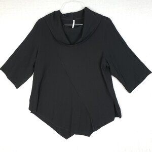 KIYO Asymmetrical Tunic Top Lagenlook Cowl Neck Black 3/4 Sleeve size M Relaxed