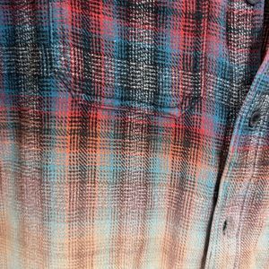 KOTO Dip Bleached Ombre Plaid Flannel Shirt Button Up SIZE Small