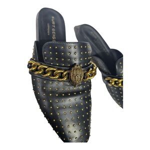 KURT GEIGER LONDON Black Leather Studded Chelsea Loafer Mule - Size 37