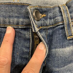 Preowned condition, puckering, wear, holes, distress, wear, see photos