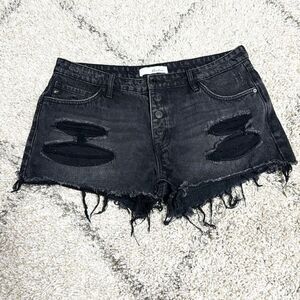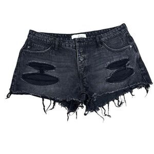 Kancan Black Button Fly Frayed Denim Shorts Size 13