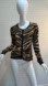 Karen Millen eye catching tiger striped cardigan sweater. Chic, timeless and classic style, crew neck with long sleeves with snap front closure. Soft silk blend. Quiet luxury, old money, mob wife