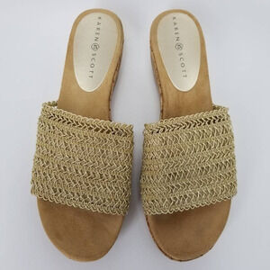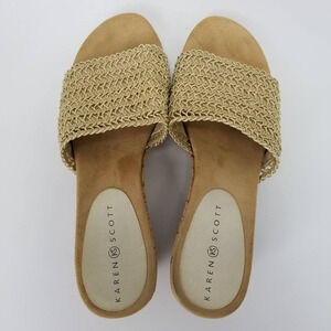 Karen Scott Womens Frankklyn Sandals Beige Cork Platform Heels Slip Ons 9 M