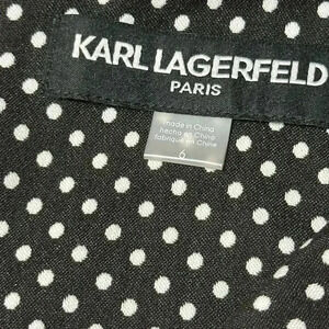 Karl Lagerfeld Designer Polka Dot Black Midi Dress Pearl Details Size 6