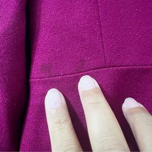 Wide black lapels adding a formal element to the design against the vibrant magenta color