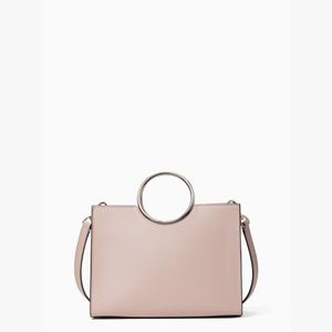 Kate Spade Heart It Sam bag- new with tags. Smooth light pink leather with red heart. Detachable strap.