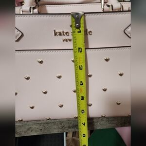 Adorable Kate Spade heart stud's satchel. Like new condition, hard to find. This bag is so very cute and so girly! The little stud hearts and attached very well, there is no damage to this bag, it is like new condition. No stains, rips, tears, odors, etc. The zipper works great, and there is a fabric interior. There is also a pocket on the backside. This is a very nice smooth leather. Color is a light blush pink. Comes from a smoke free home. Will include the original crossbody strap. Thanks for looking! Price is firm.